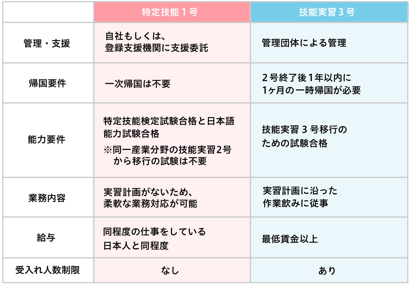 特定技能制度は人手不足を補う労働力としての雇用を前提としています。国際技能移転(国際協力)を目的としている技能実習制度とは大きく異なります。そのため、一部の分野では永住権を獲得できるルートが設けられています。